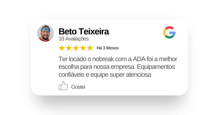 Bem-vindo à ADA Engenharia! Com mais de 30 anos de experiência, somos especialistas em locação de nobreaks para grandes empresas que precisam de segurança e continuidade energética. Nossa equipe altamente qualificada está pronta para oferecer nobreaks de alta capacidade, ideais para manter suas operações ininterruptas e protegidas contra falhas de energia.